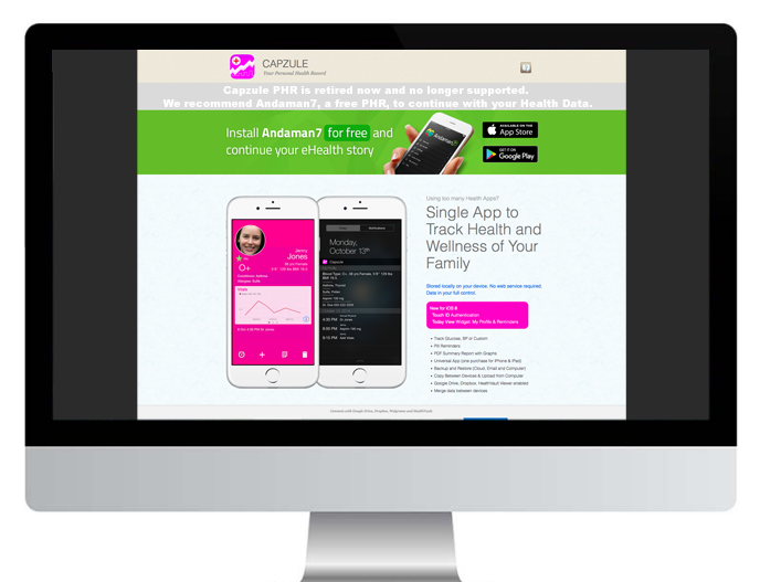 Vous étiez un utilisateur de Capzule? Envoyez-nous un email à capzule@andaman7.com pour du support. Si vous connaissez quelqu'un qui utilisait l'app "Capzule", faites-leur aussi savoir que nous existons pour qu'ils puissent continuer la gestion de leurs données de santé, gratuitement :).